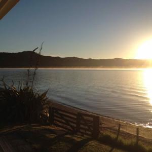 I’m sitting on the deck of a little bach (New Zealand holiday home/weekender) overlooking Awaawaroa Bay on Waiheke Island, just off Auckland.